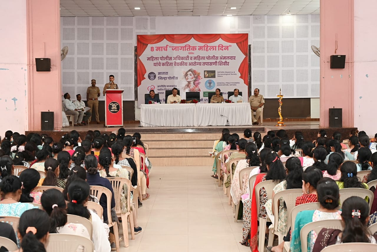 8 मार्च, “जागतिक महिला दिनाचे” निमीत्त सातारा जिल्हा पोलीस दलातील महिला पोलीस अधिकारी व महिला पोलीस अंमलदार यांचेकरीता वैद्यकीय आरोग्य तपासणी शिबीराचे आयोजन करण्यात आले होते. सदरच्या आरोग्य तपासणी शिबीरामध्ये जनरल चेक अप सह महिलांमधील स्तनांचा कॅन्सर, गर्भाशय आणि गर्भाशय मुखाचा कॅन्सर, आस्थिंचा ठिसूळपणा (Bone Mineral Density) Vit. B12, D-3 या देखील तपासणी करण्यात आल्या. महिलांच्या आरोग्याकडे पाहण्याचा महिलांचा स्वत:चा आणि कुटूंबाचा पाहण्याचा दृष्टीकोन हा बऱ्याच वेळेस उदासीन असतो. यास्तव मा. पोलीस अधीक्षक श्री समीर शेख यांचे मार्गदर्शनाखाली सातारा जिल्हा पोलीस दल व क्रांतीसिंह नानासाहेब पाटील सर्वोपचार रुग्णालय सातारा, ऑबस्टेट्रीक ॲन्ड गायनॅकोलॉजिकल सोसायटी, जनरल प्रॅक्टीशनर्स असोसिएशन सातारा, ( सम्राज्ञी लेडीज विंग ), बोकील मेट्रोपोलिस पॅथॉलॉजिकल लॅबोरटरी सातारा यांच्या संयुक्त विद्यमाने सातारा जिल्हा पोलीस दलातील 410 महिला पोलीस अधिकारी व अंमलदार यांची वैद्यकिय आरोग्य तपासणी करणेत आली. –