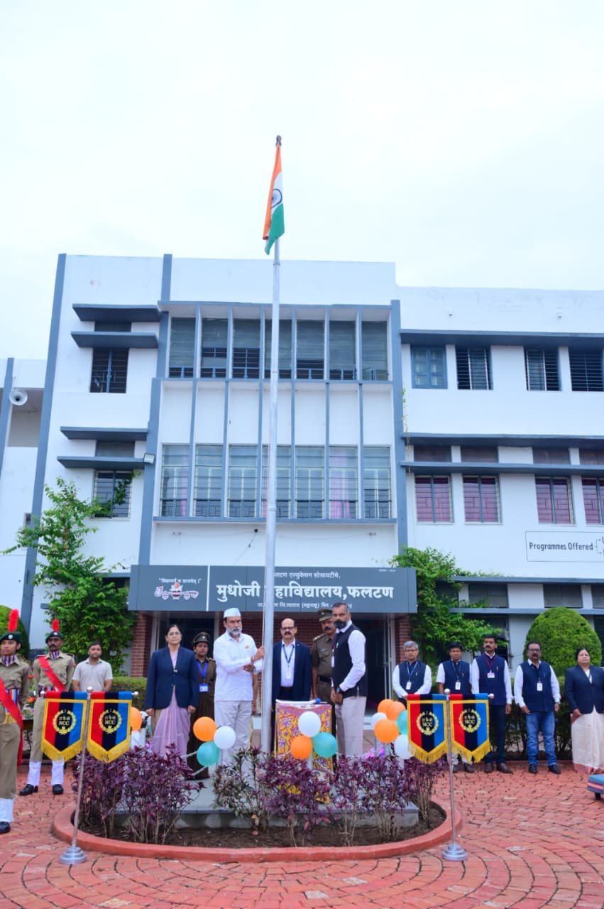 फलटण प्रतिनिधी : फलटण एज्युकेशन सोसायटीच्या मुधोजी महाविद्यालयात स्वातंत्र्य दिन प्रमुख मान्यवरांच्या उपस्थितीत उत्साह पूर्ण वातावरणात विविध उपक्रमांनी साजरा करण्यात आला.
