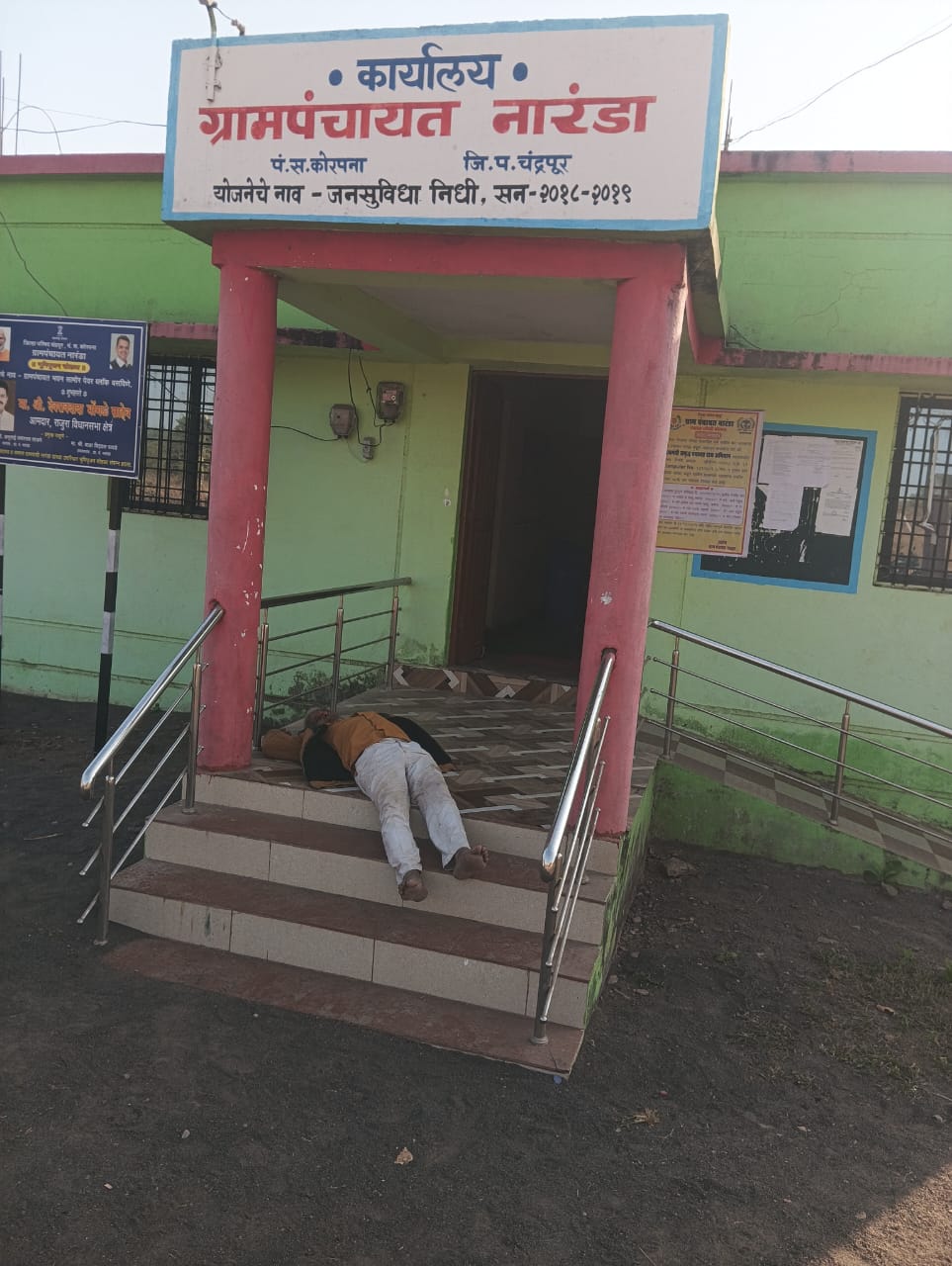कोरफना तालुक्यातील नारंडा येथील ग्रामपंचायत कार्यालयाचा वरांडा सध्या दारुड्यांचा अड्डा बनल्याचे धक्कादायक चित्र समोर आले आहे. काही नागरिक ग्रामपंचायत कार्यालयातच दारू पिऊन, बेशुद्ध अवस्थेत वरांड्यात आराम करत असल्याचे प्रकार सातत्याने घडत असून, यामुळे प्रशासनाची प्रतिमा मलीन होत आहे.