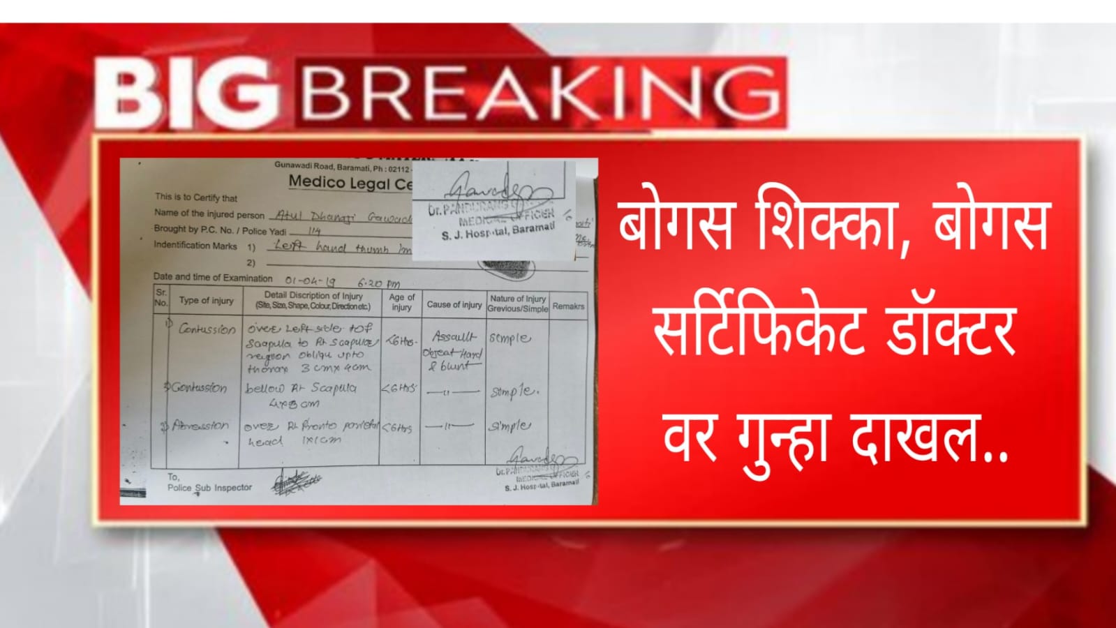 बारामतीच्या शासकीय रुग्णालयाचा बोगस शिक्का, बोगस सर्टिफिकेट..गैरवापर झाल्याने डॉक्टरवर गुन्हा दाखल..