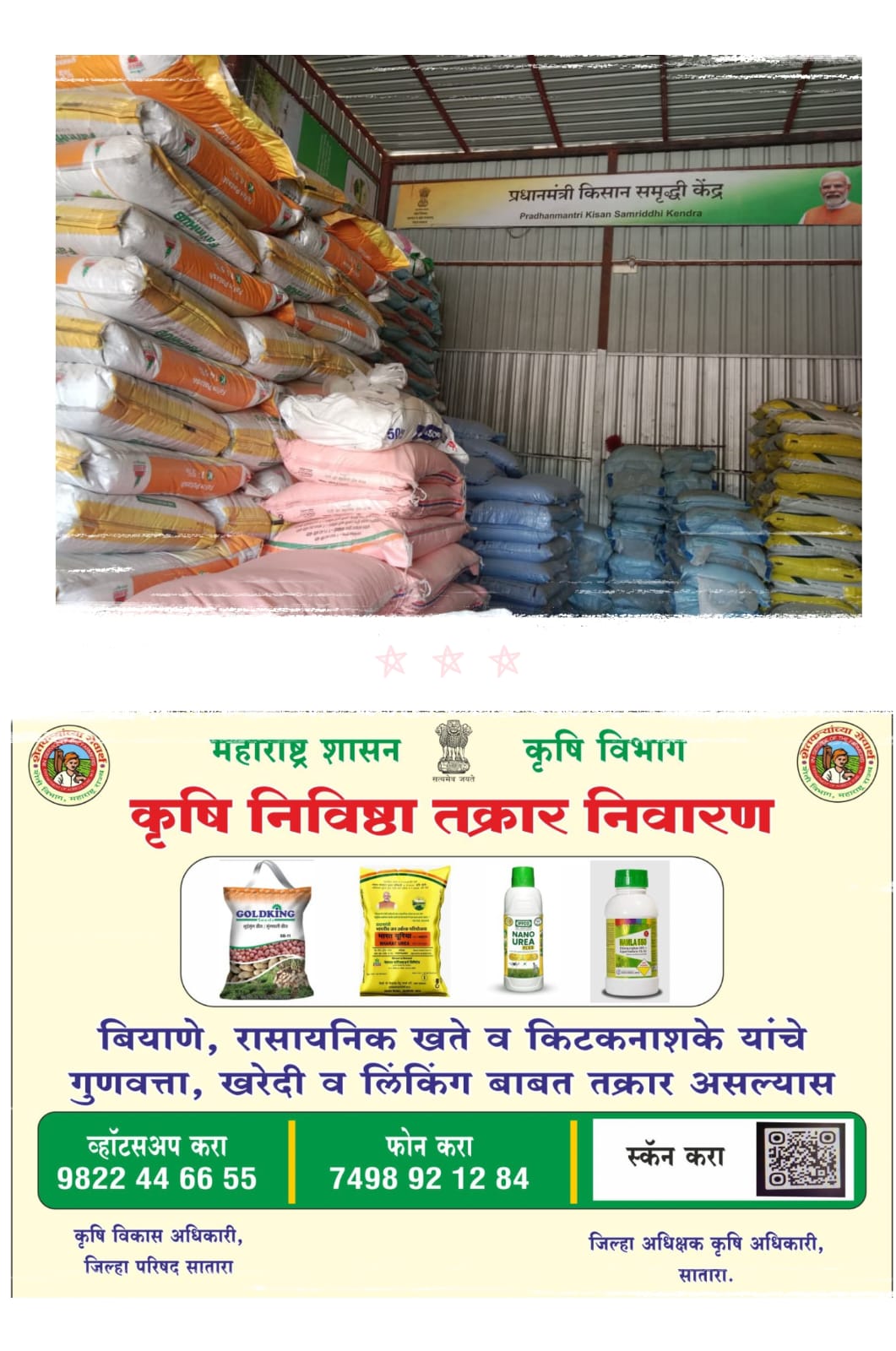 यावेळी शेतकऱ्यांना कोणी दुकानदाराने युरिया नाही म्हटले तर त्याची तक्रार 7498921284 टोल फ्री क्रमांक वरती करावी व व्हाट्सअप साठी 9822446655 या क्रमांकावर संपर्क साधा असे कृषी विभागाकडून सांगण्यात आले आहे.