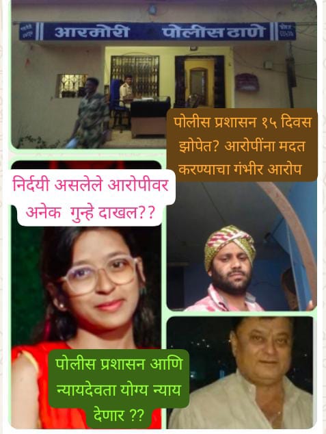 पीडित कुटुंबीयांच्या परिवारातील सदस्यांनी केला आहे .आरोपानुसार, नागपूर येथील इमामवाडा पोलिसांनी दिनांक १५ मार्च २०२६ रोजी वैद्यकीय तपासणी अहवाल आरमोरी पोलिसांकडे पाठवला होता. मात्र, त्यानंतरही जवळपास १५ दिवस आरमोरी पोलिसांनी या गंभीर प्रकरणाकडे ढुंकूनही पाहिले नाही, असा संतापजनक आरोप करण्यात आला आहे.